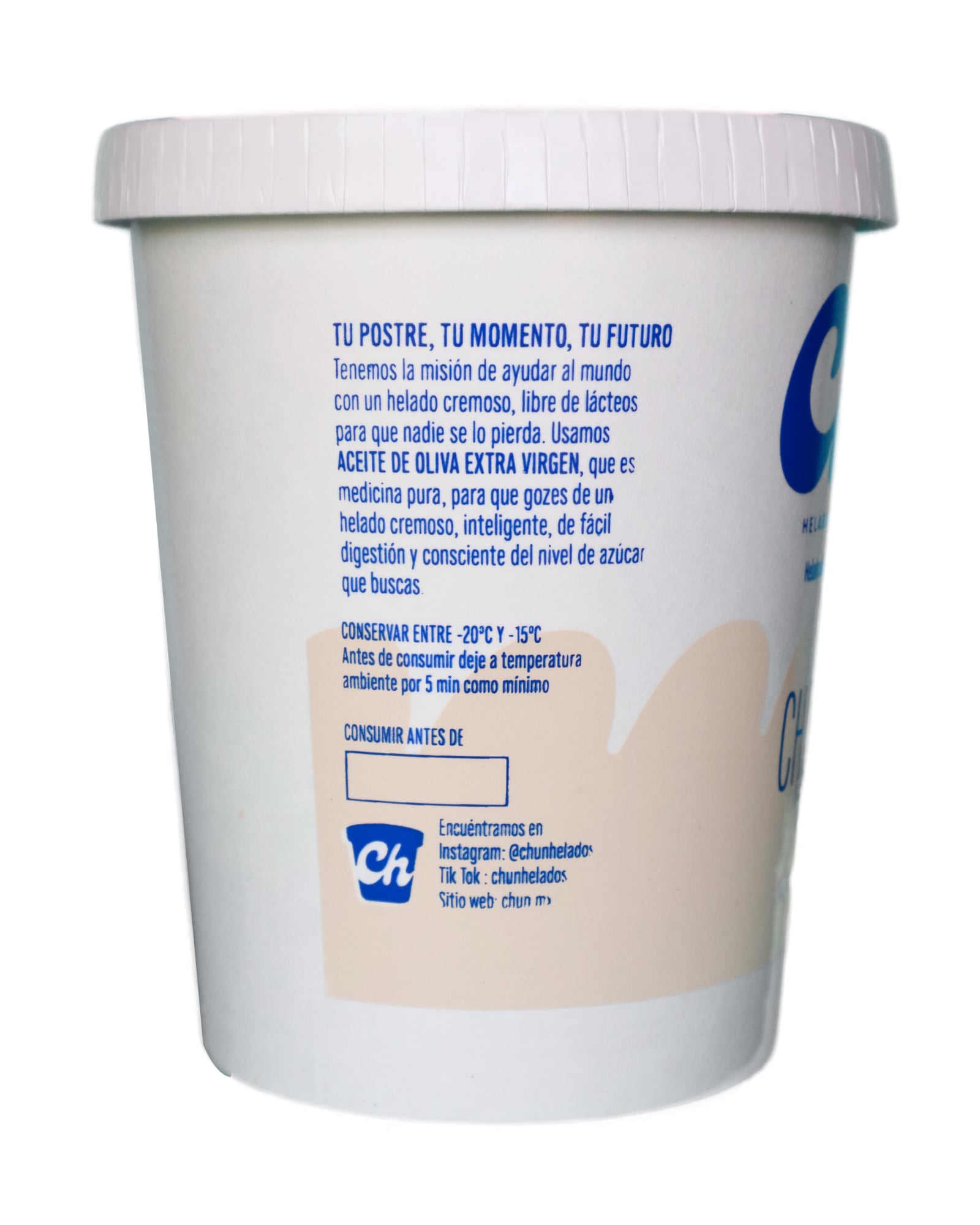 Descubre el Helado de Vainilla Chun: un nuevo estándar de lo cremoso, saludable y delicioso.** Hecho con **Aceite de Oliva Extra Virgen prensado en frío**, Chun es mucho más que un helado: es una experiencia nutritiva, suave y equilibrada que no inflama ni provoca malestar. Sin lácteos, sin gluten y sin edulcorantes, este helado está diseñado para quienes buscan un postre auténticamente cremoso gracias a su fórmula única, obtienes una cremosidad real sin los efectos secundarios del azúcar en exceso o los productos lácteos. Además, su combinación de **fibra vegetal y grasas buenas** ayuda a regular los niveles de azúcar en la sangre, proporcionando energía constante sin picos ni bajones. Ideal para niños, adultos, para todos.